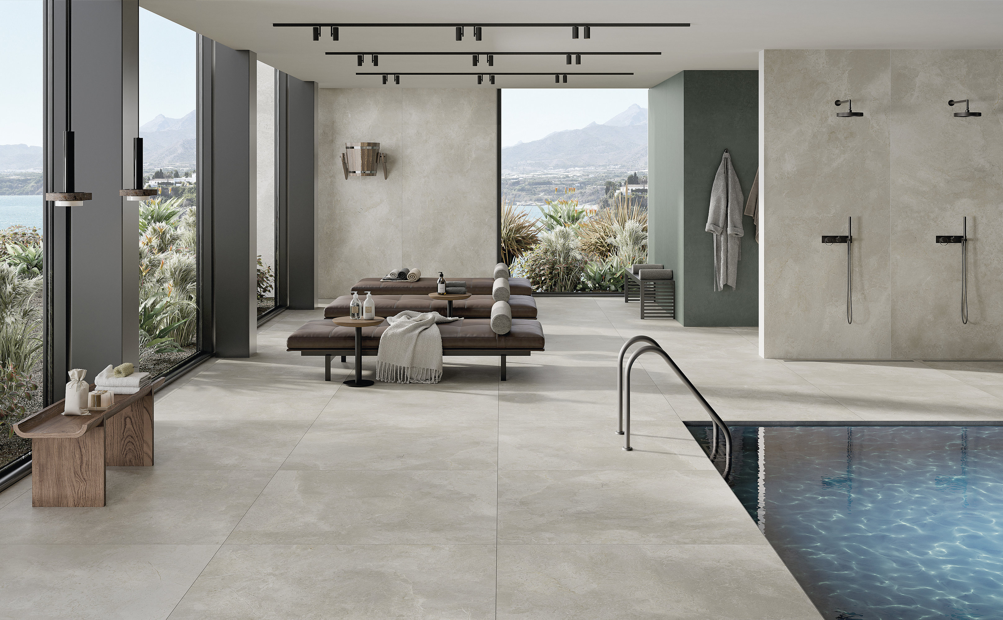 AION es la nueva superficie Maximum que combina líneas esenciales, rigor de proyecto y sensación de ligereza. La belleza intrínseca de la piedra emerge en una cuidadosa y sabia elaboración en gres porcelánico: un look discreto, de carácter minimalista, que se combina fácilmente con texturas clásicas y también con las más elaboradas.