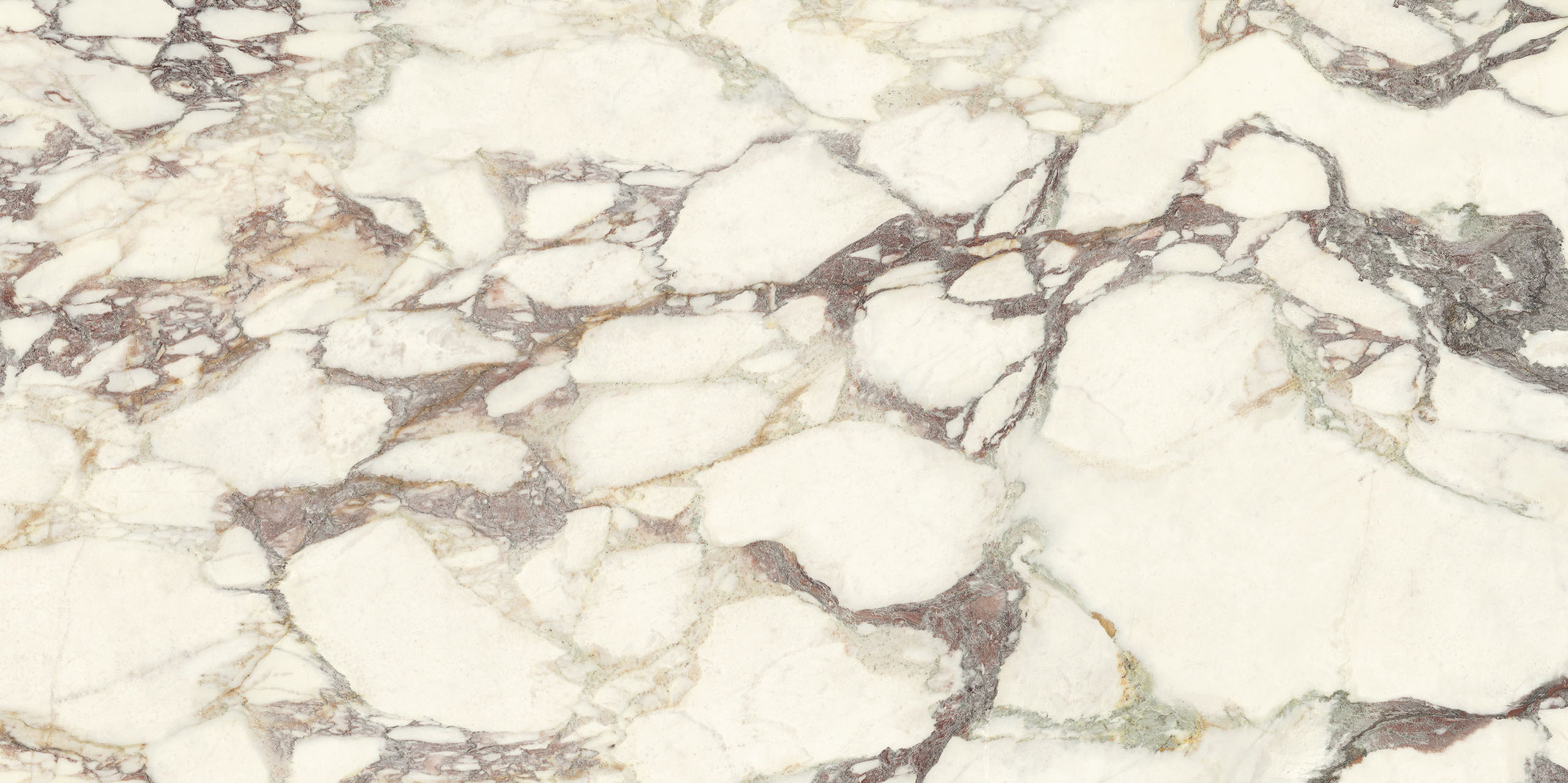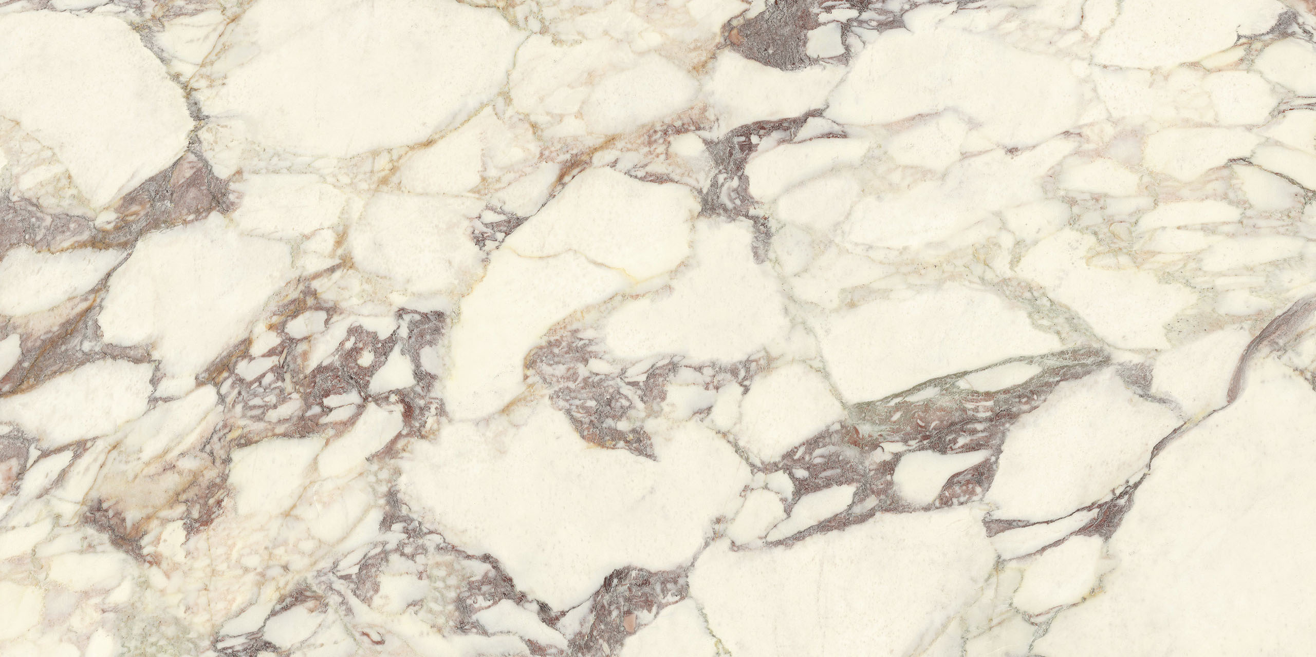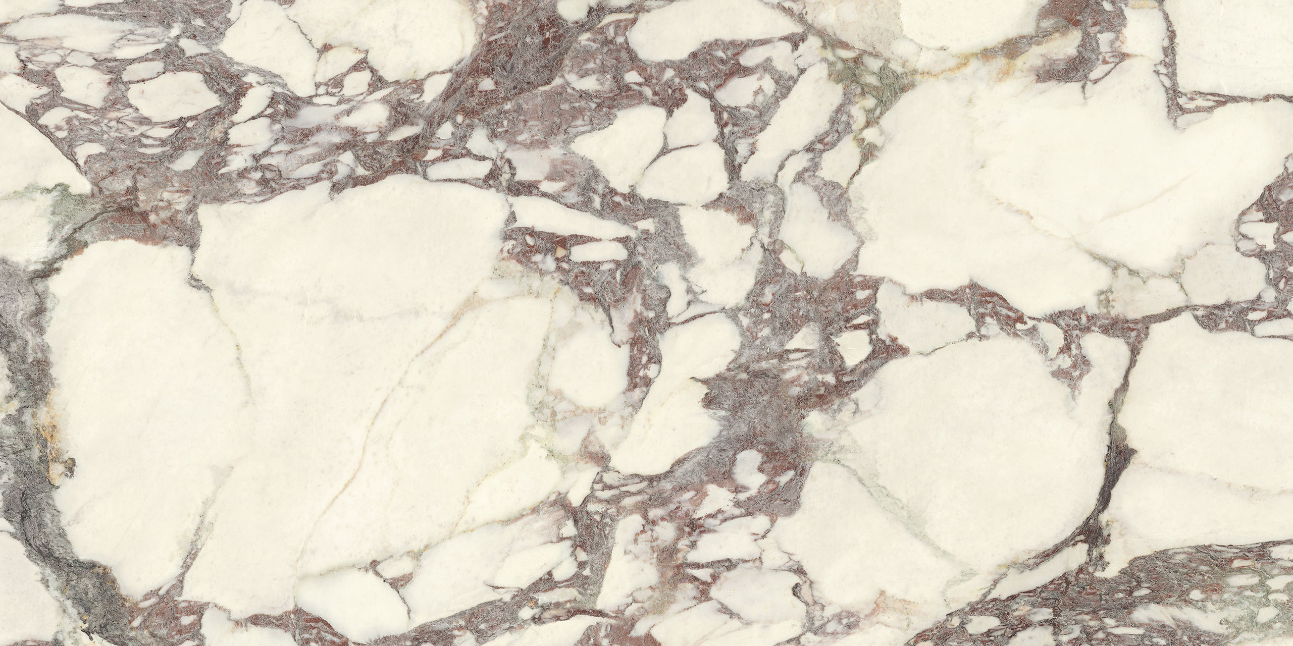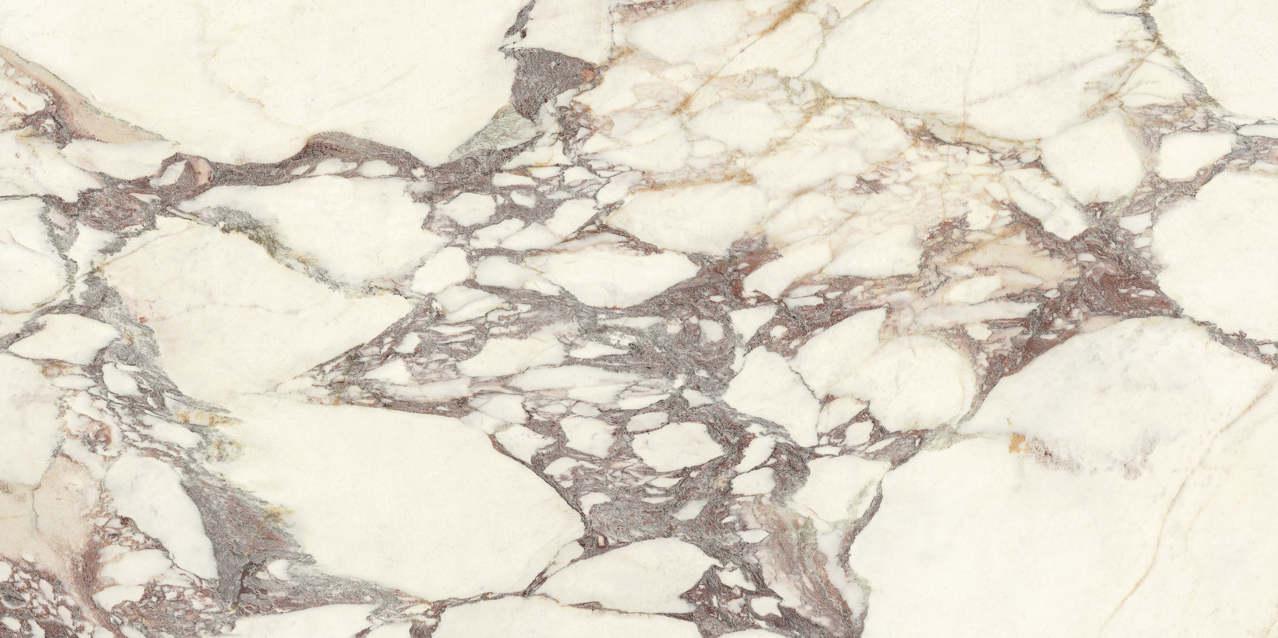 La structure largement veinĂ©e et son caractĂšre noble Ă©voquent les fastes anciens. Le liant, dans des tons violets classiques, dessine des formes libres sur le fond blanc chaud, tandis que les nuances vertes ou rosĂ©es se mĂȘlent Ă des Ă©clats presque dorĂ©s. La polychromie est parfaitement rĂ©ussie. Disponible en formats classiques et Maximum.