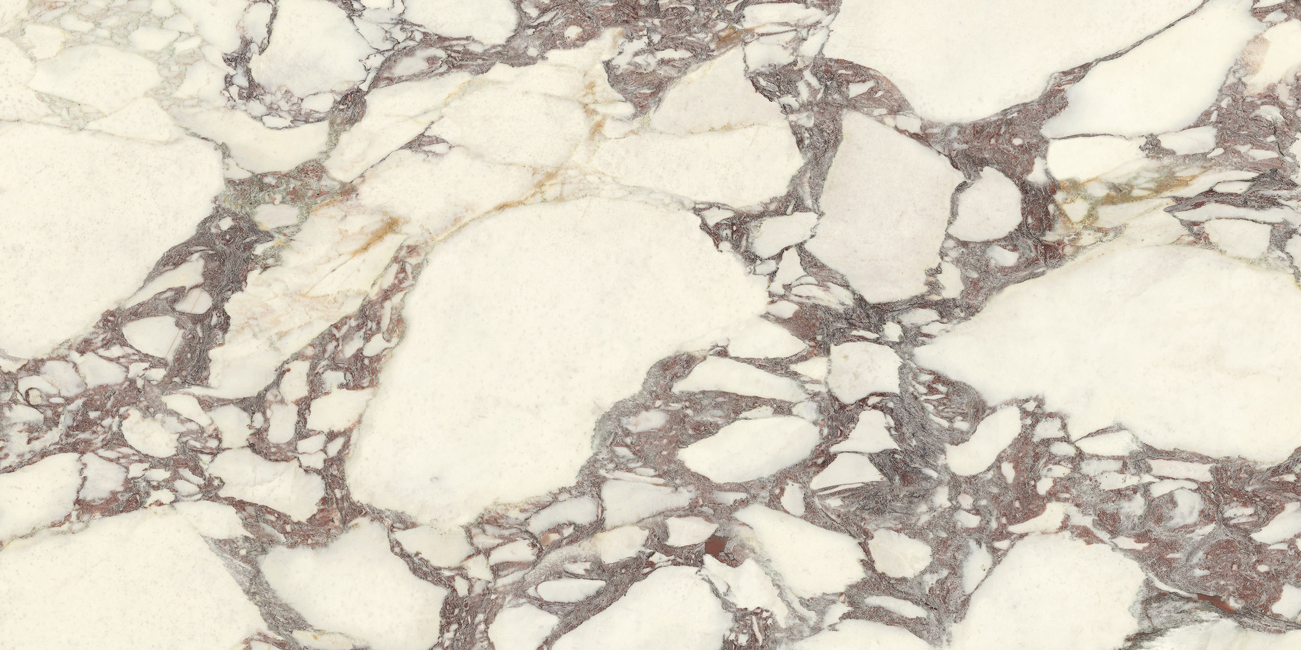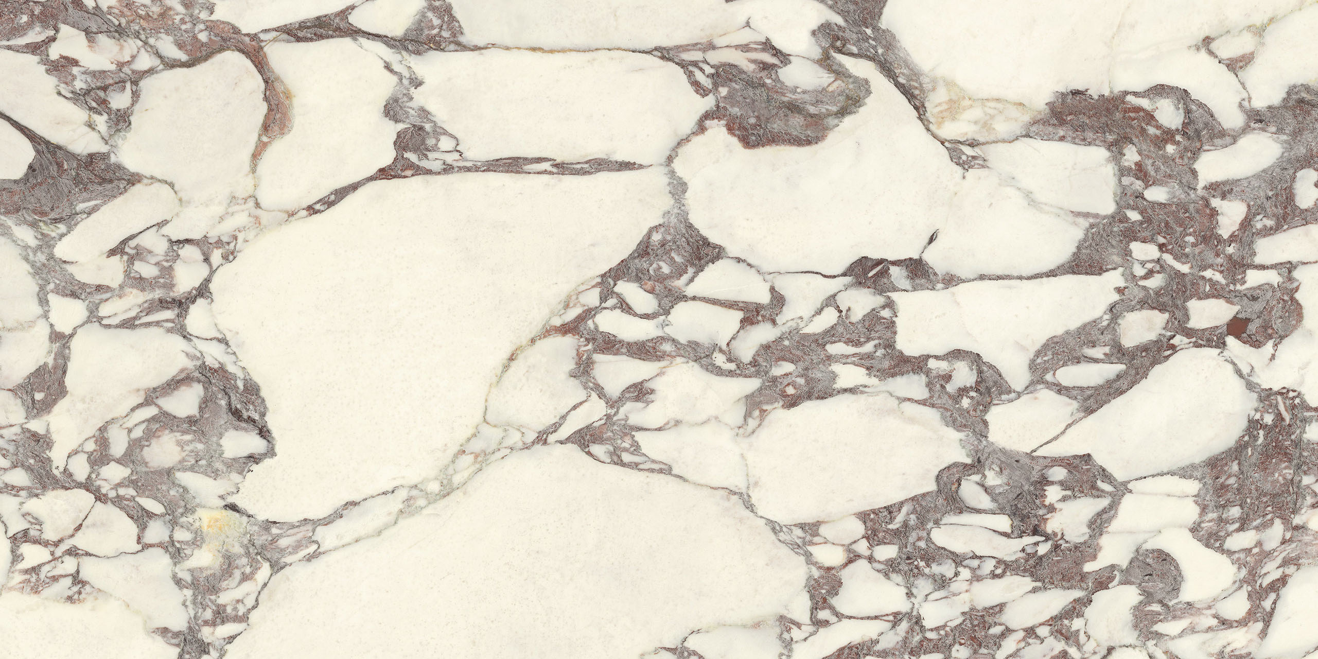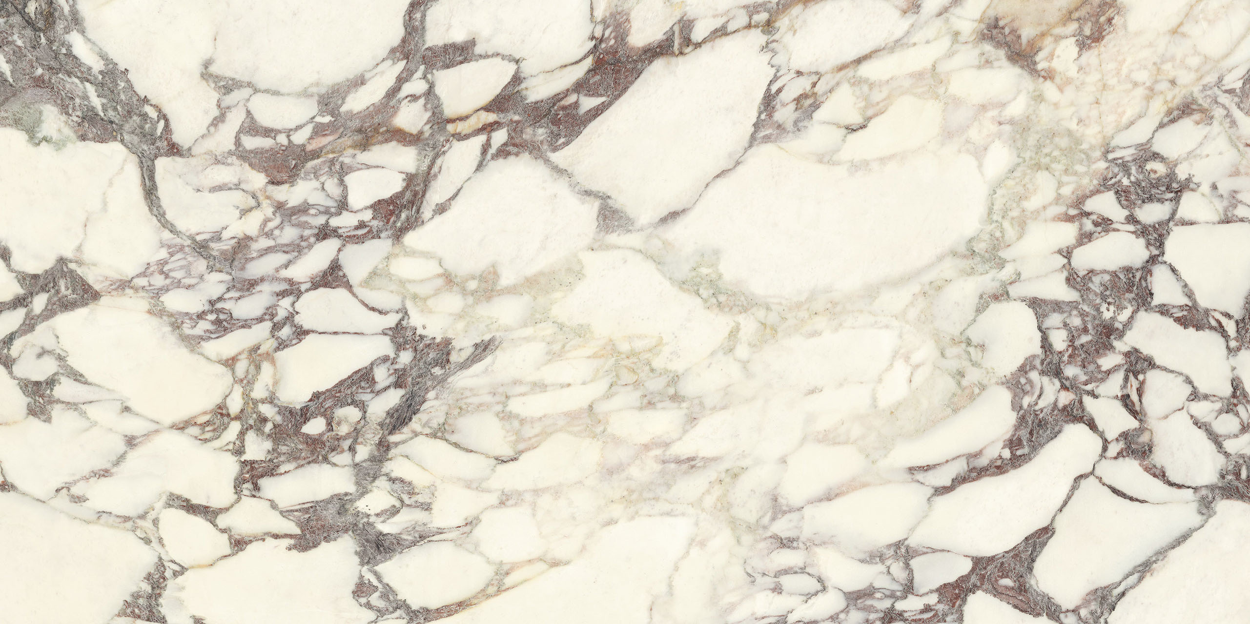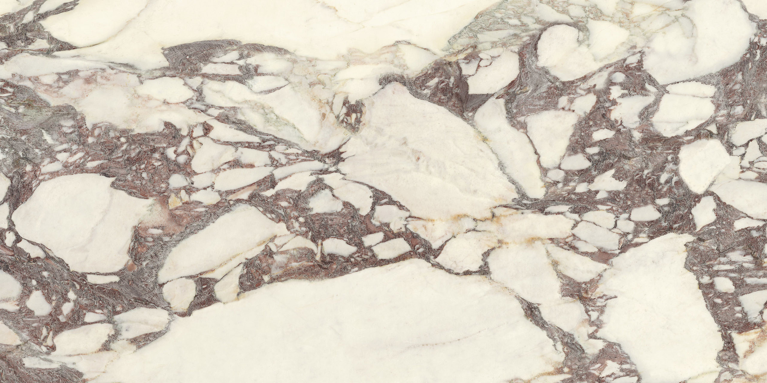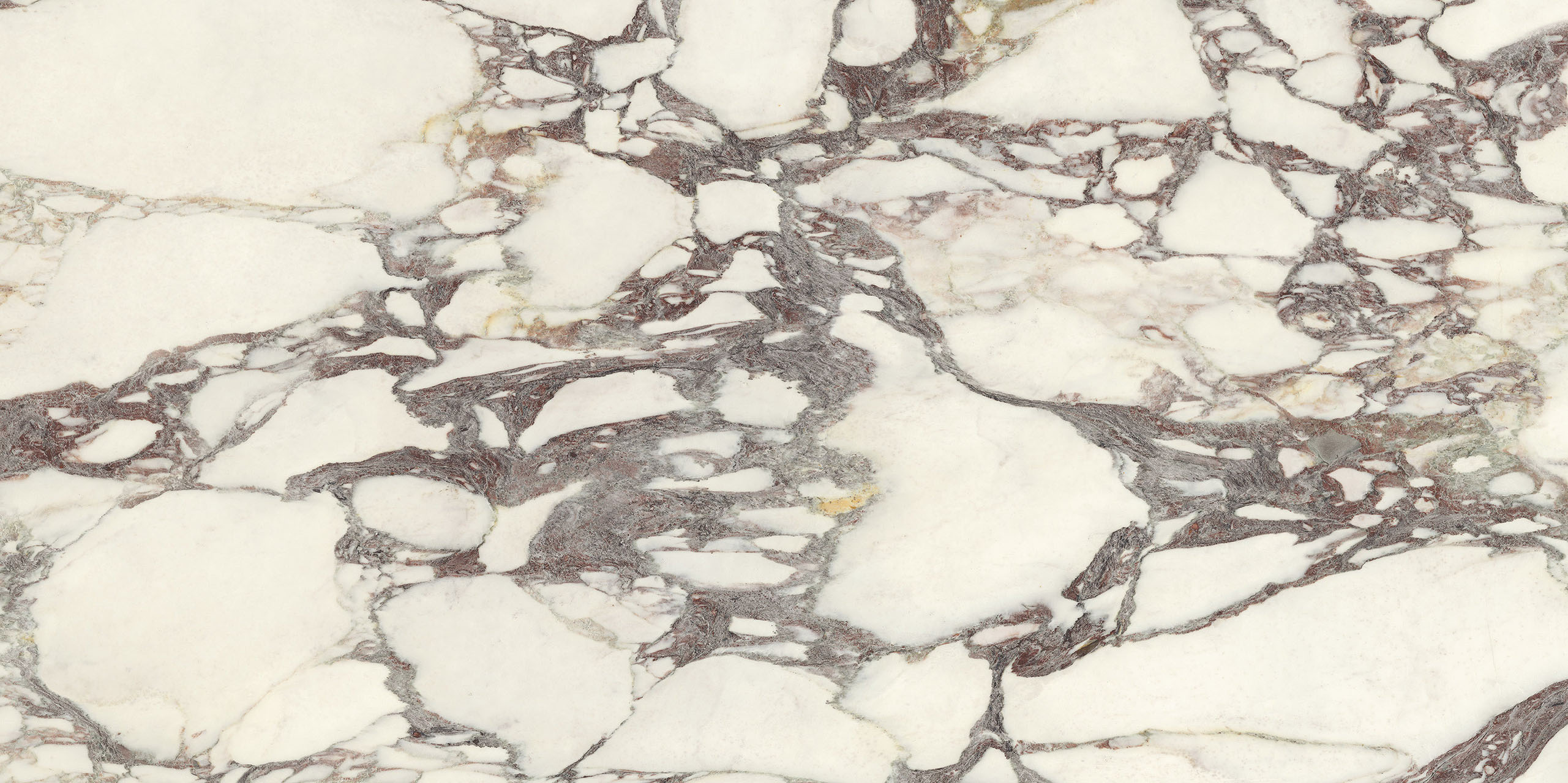 La structure largement veinĂ©e et son caractĂšre noble Ă©voquent les fastes anciens. Le liant, dans des tons violets classiques, dessine des formes libres sur le fond blanc chaud, tandis que les nuances vertes ou rosĂ©es se mĂȘlent Ă des Ă©clats presque dorĂ©s. La polychromie est parfaitement rĂ©ussie. Disponible en formats classiques et Maximum.
