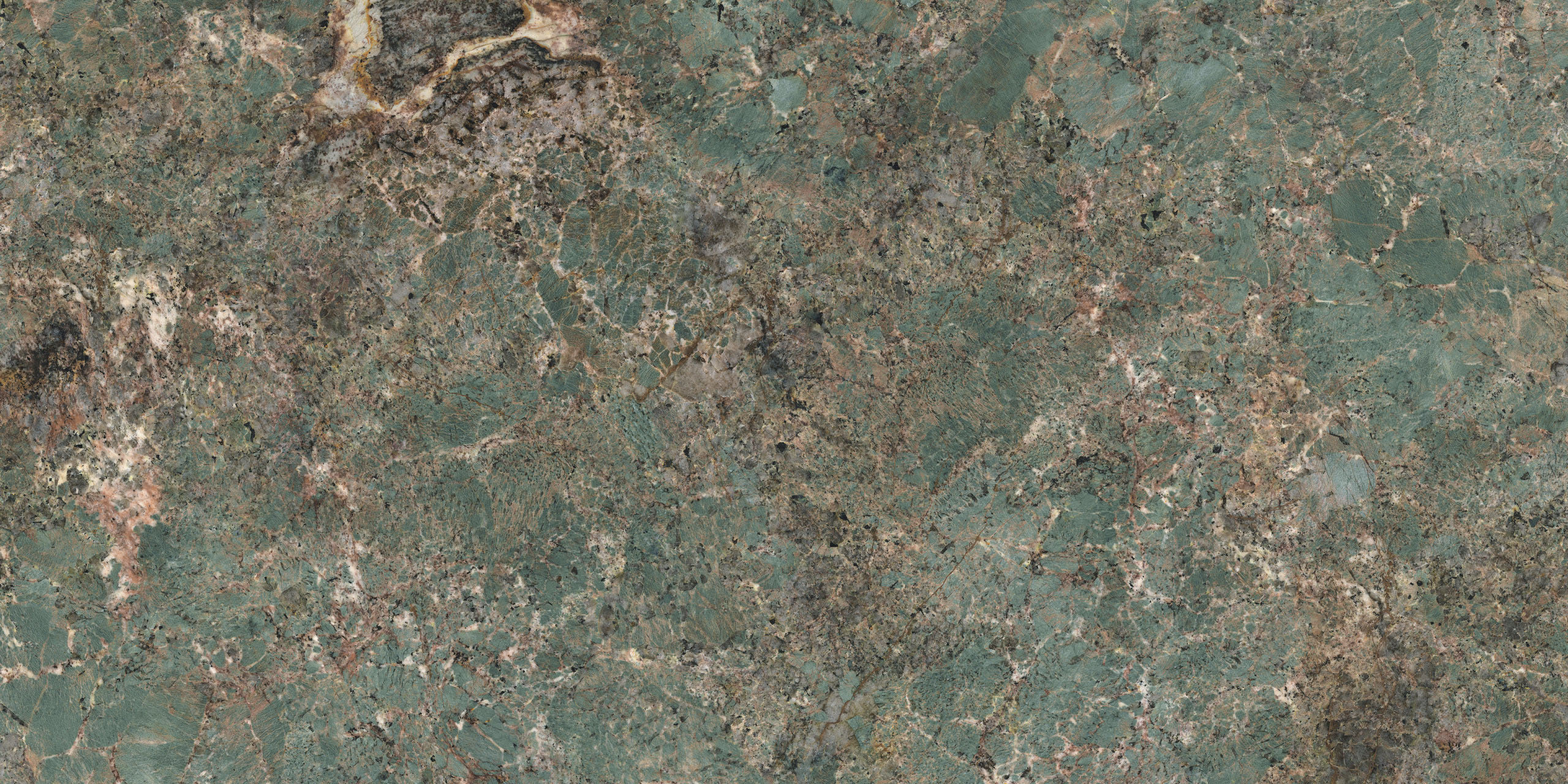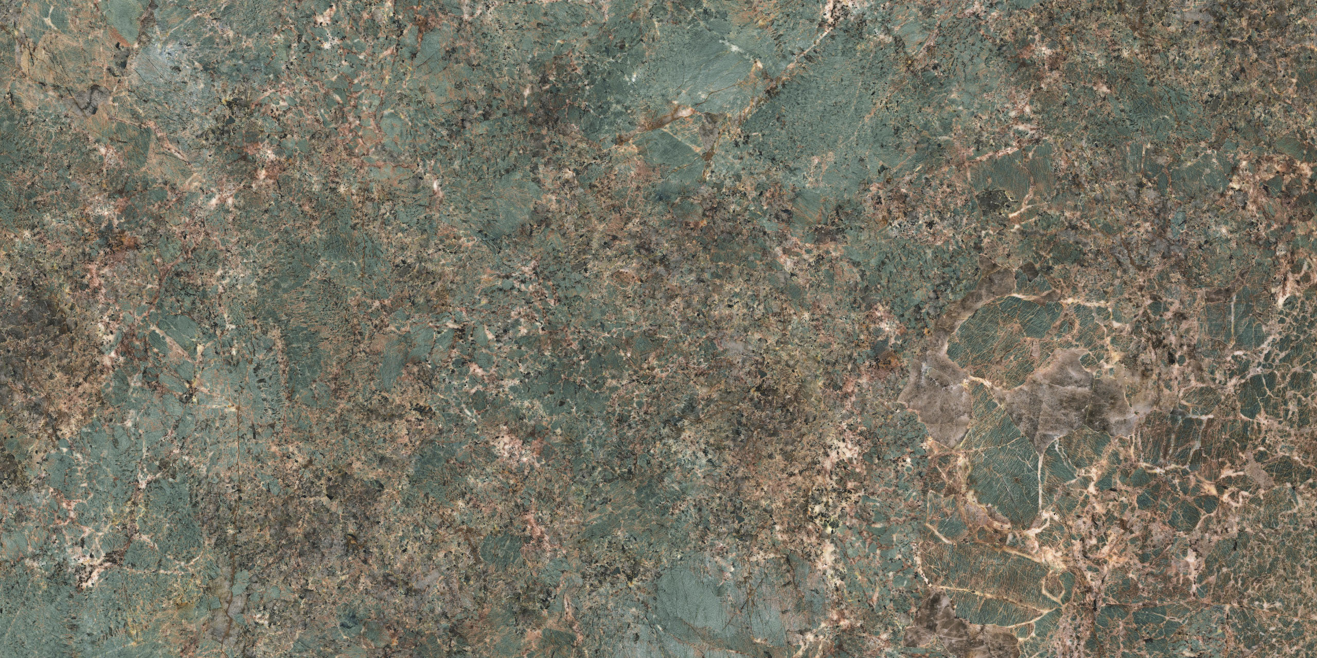 Amazonite est une nouvelle dalle de la collection Marmi Maximum, dont la texture s’inspire de la pierre précieuse éponyme, considérée par les Égyptiens comme la « pierre de l’espoir ». De couleur vert aqua, l’amazonite est un minéral très rare à l’esthétique saisissante, avec un motif dense et veiné allant des tons bruns aux tons pêche, ponctué de touches de blanc et de gris. La finition polie met en valeur la surface, rendant ce matériau unique et précieux.