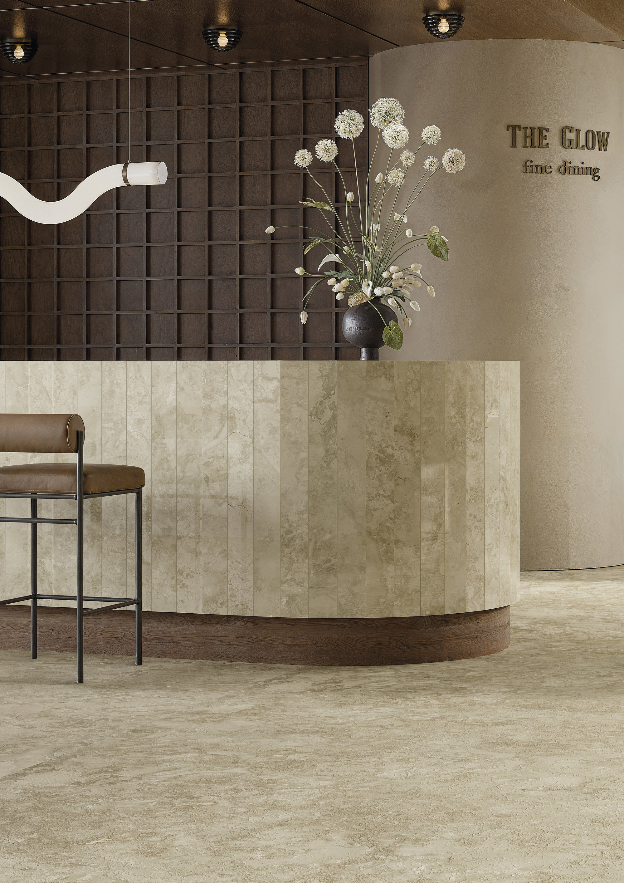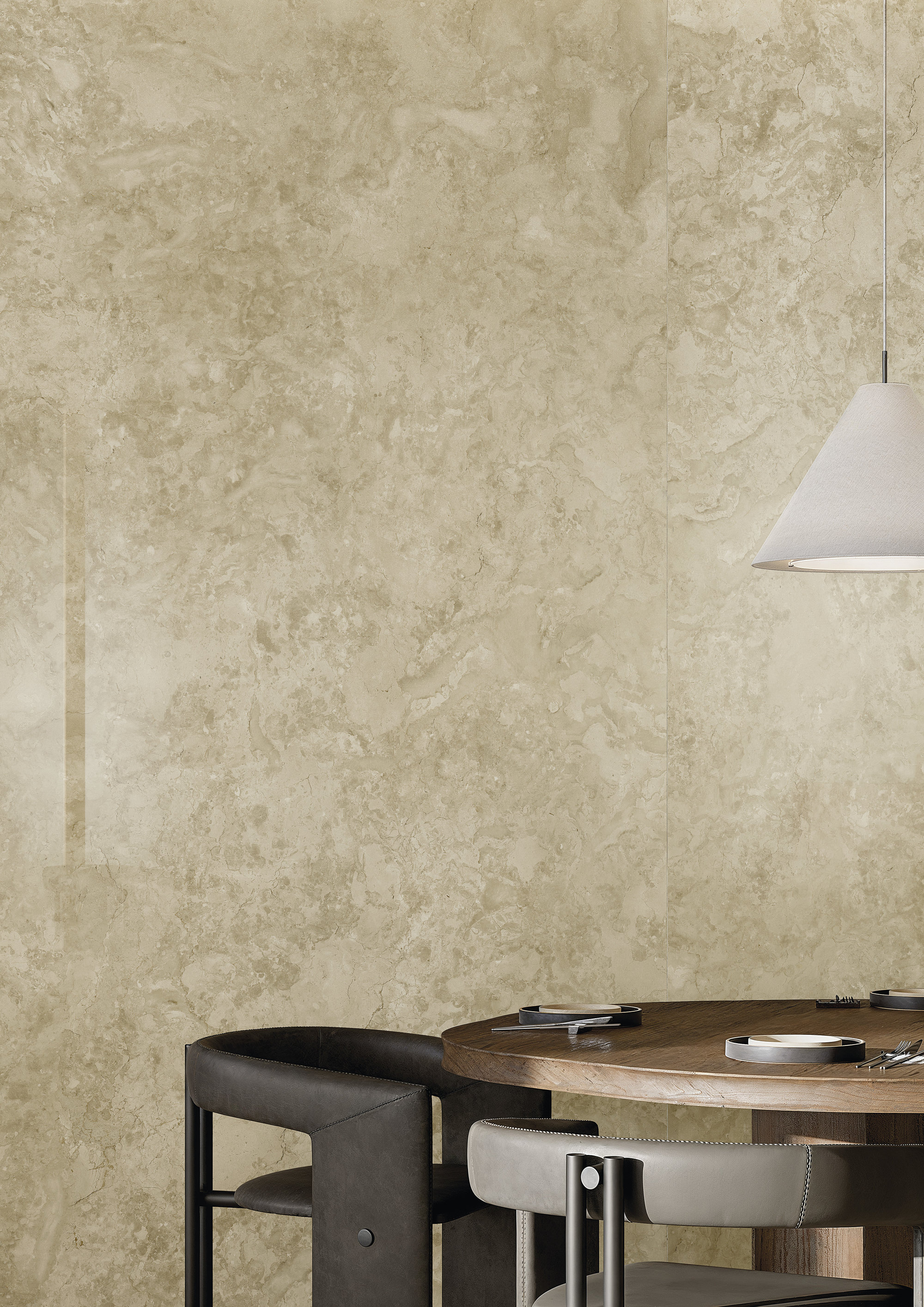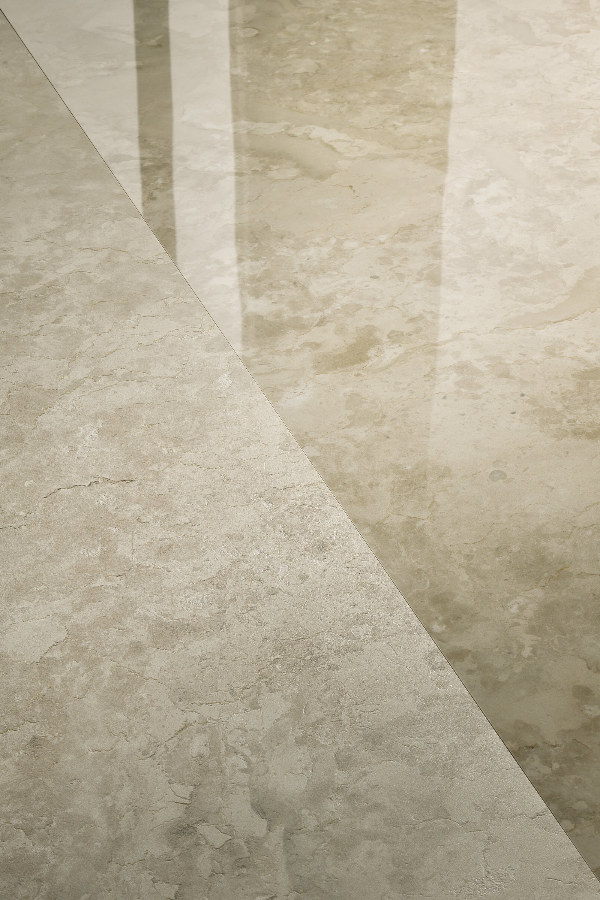 Un fond beige parcouru d’un motif de veines délicates, inspiré des marbres calcaires italiens. Une surface qui combine sobriété et mouvement grâce à ses textures complexes et irrégulières, pour un résultat équilibré et naturel. Fiorenza est disponible en finition Natural, mate et tactile, avec un graphisme et un relief parfaitement correspondants, et en finition Polished extra-brillante, qui valorise la profondeur chromatique et la richesse du dessin. Cette surface au format Maximum est réalisée avec une technologie à base d’eau : rendu esthétique excellent, haute définition de l’image et effet matière, dans le respect de la durabilité environnementale.