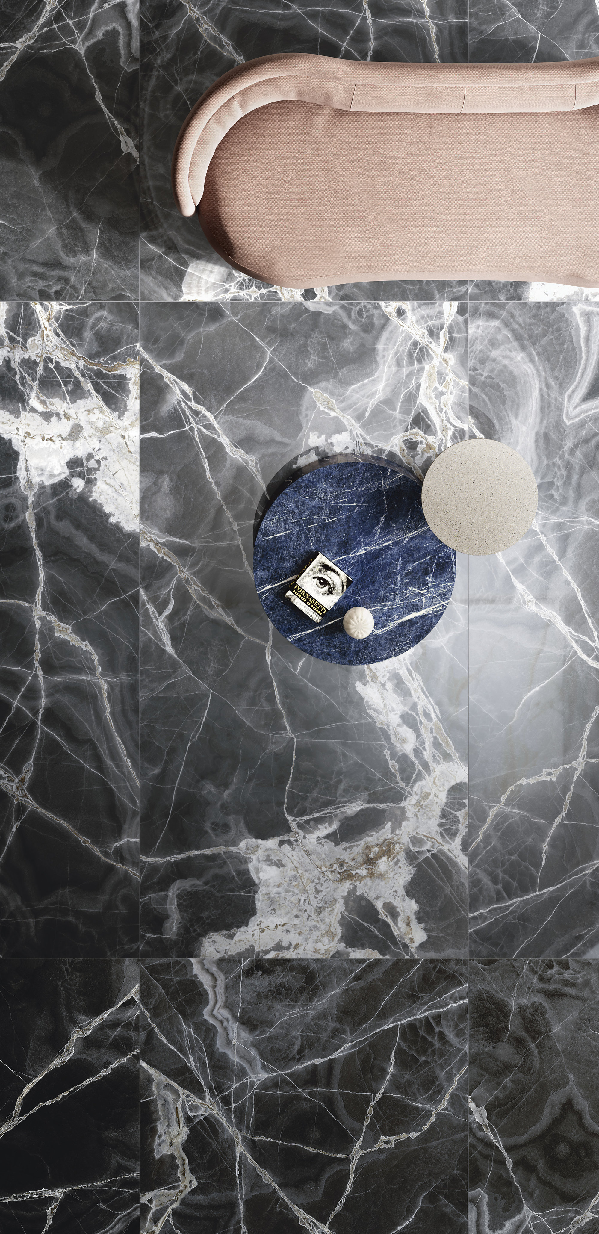 Majestic Onyx Maximum est une surface céramique qui renferme une profondeur et une raffinement extraordinaires. Elle évoque un bouquet de fleurs immaculées, cristallisées et suspendues sur un fond de nuances grises : de fines veines et des transparences lumineuses apparaissent comme de délicats éclats sur un velours couleur fumée. Un chef-d’œuvre qui mêle la poésie de la nature à la fiabilité et aux performances intemporelles du grès cérame Fiandre.